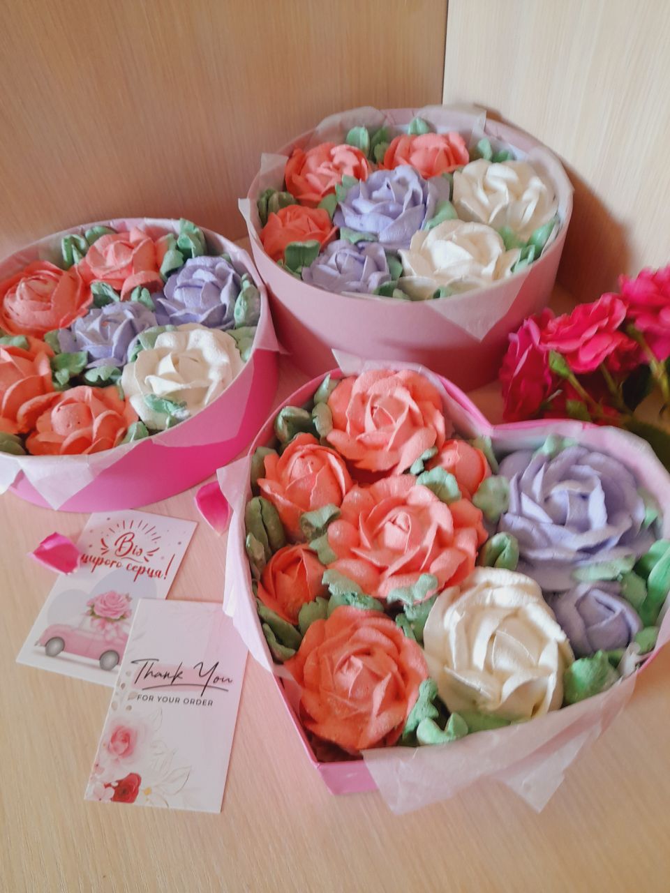 У світі зефірної насолоди вже більше 4 років. Починалось все зі звичайного зефіру, завитків. Просте бажання спробувати і відтворити зефір смаком з дитинства. Інтернет був перевернутий весь, рецептур зібрано море. Усі вони цікаві, дуже різні, багато з них я спробувала, але не завжди була задоволена результатом. І от, одного разу я натрапила на сторінку Вікторії. І, о Боже... 200 смаків зефіру, 200🤩. У мене голова обертом пішла. Я не вагаючись придбала курс. Який би не спробувала рецепт, усі вдалі. Неймовірно смачні, ароматні, текстурно правильні, стабільні😃. Смак "Фраголіно-порична" швидко став бестселером серед замовлень. А 1,5 року тому мене зачарували зефірна флористика. Я дивилась на роботи майстринь і просто мріяла, як і у мене колись таке вийде. Я наполегливо відпрацьовувала лише 1 рецепт з посібника на основі ялучного пюре. Браку було повно. Були думки полишити ідею і задовольнятись лише завитками.