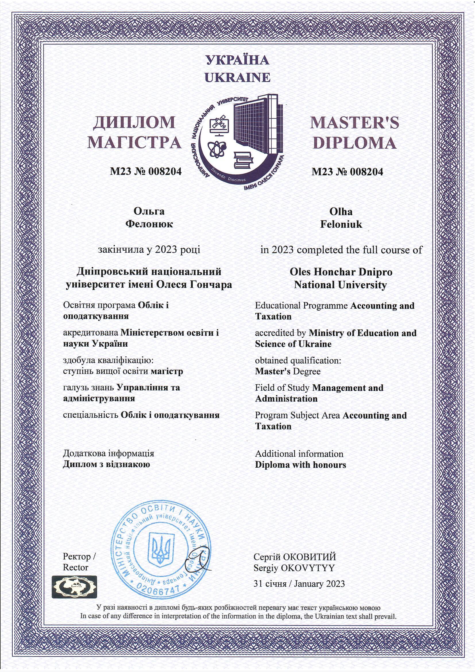 У січні завершила навчання на магістратурі, отримавши диплом з відзнакою. Недовго думаючи вирішила влаштуватись на першу роботу за спеціальністю (щоб набуті знання хоч десь використати). Так вийшло, що взяли з першої співбесіди в українську аудиторську компанію. А вже в жовтні надійшла пропозиція на посаду в міжнародній компанії, яку з радістю прийняла)