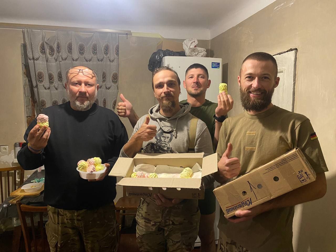 Привіт. Мене звати Наталія.Цей рік у мене був дуже насичений.Організували свій цех по плетінню сіток для військових.Запитів було стільки, що часу не вистачало катастрофічно.Тому,щоб бути більше часу з дітьми,вони приходили на допомогу.Коли наступали моменти вигорання, рятувалась виготовленням зефіру.Благо потрапила на ефіри Вікторії, і купила всі курси по зефіру.Це такий захоплюючий процес,стільки смаків.🥰І Але ж потрібно було його кудись давати,бо куди не глянь, повсюди бокси з зефіром.На допомогу прийшли військові,вони були моїми дегустаторами.Всі нові рецепти вони першими випробовували.Мої знайомі почали називати мене Зефіркою.А на днях приїхав чоловік,і запитує-"Вгадаєш, де наша машина?"А на одній надпис"Зефірка для ЗСУ"Кращої нагороди я ще не отримувала.