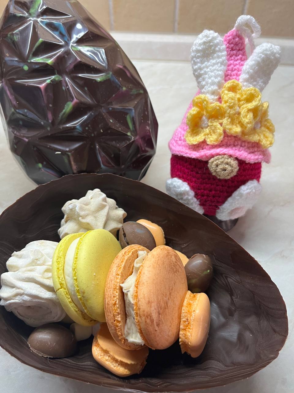 В арсеналі моїх замовлень переважно макарони з різними смаками, малюнками, брендовані чи стилізовані під свята. Це те, що завжди можна замовити без приводу і потішити себе смачненьким. Також, я часто готую торти на замовлення і це, скажу вам чесно, я люблю найбільше. Так, роботи з тортом інколи в 10 разів більше, але ніщо не замінить творчий процес створення дизайну. Ще люблю готувати шоколадні сюрпризи: яйца, сердечка, бомбочки, тощо. Мабуть через те, що я сама дуже люблю сюрпризи. Дива повинні траплятися в житті кожного і коли навіть доросла людина отримує шоколадний сюрприз і здивовано розбиває його молоточком побачити що ж в середині, ці емоції викарбовуються в памʼяті на завжди! Так було і з нашими друзями з Польші, яким вже далеко за 60, але вони тішились наче діти шукаючи цукерки в шоколадному серці. Такі моменти окриляють на нові звершення!